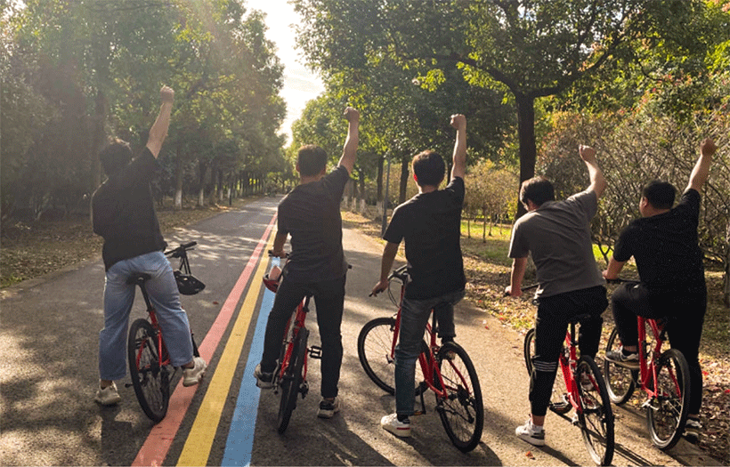 秋高气爽,微风拂面,康明永瑞的全体员工来到了提前预定好的营地草坪开启了一天的团建活动。这次团建开展了丰富多彩的各项活动,如“谁是卧底”“旋转飞盘”“纸中穿过”“环湖骑行”,既考验大家的团队协作,又突出个人风采。在轻松愉悦的氛围中,大家笑着闹着,直至中午,在烤肉的香气里,一起共享美味。